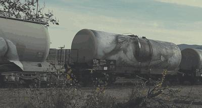 疲乏的两人在一列火车上小憩,窗外是他们精心设计过的照片闪过。