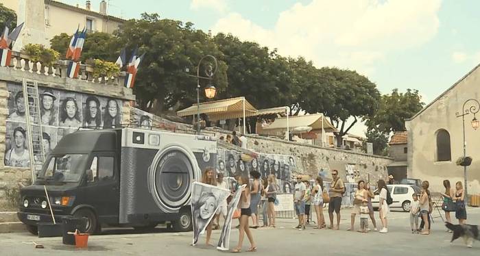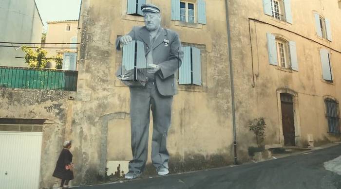 一路上他们拍摄下所遇到的人物,然后在房子和工厂的墙上涂抹告示牌尺寸大小的肖像画。