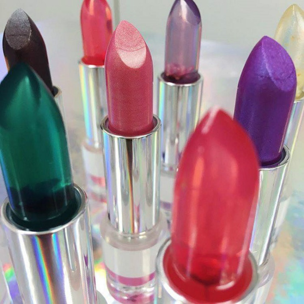 INC.redible首发产品多达54种,包括多款哑光、缎面、金属bingbling等质感的唇膏和唇釉,其中最吸睛的可能是一管膏体呈透明状的唇膏,创始人Thea Geen表示真的在膏体内植入了一株小花才有了这种效果。这款唇膏以滋润为主,含有维生素E等保养成分。