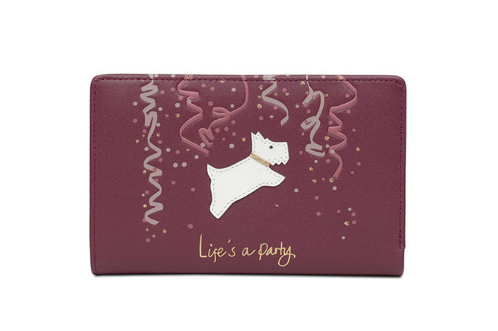 Radley London有很重的英国情结,不仅logo是一种苏格兰纯种犬,每季的包款也会用英国城市命名。但除了这些,Radley London在设计上并不执着与英伦风,包包款式多样,既有适合逛街购物用的大号布袋Tote包,也有近年来各个大牌都赶着出的硬质“盒子包”,通勤风挎包更是每季的主打包款。而最新圣诞系列Dog Series零钱包比较意外,走萌系路线了。两款“狗狗包”萌到让你不忍心从它肚子里掏钱,另一款有烫金苏格兰梗图案的勃艮第红色钱包最合时宜,写着“life’s a party”。