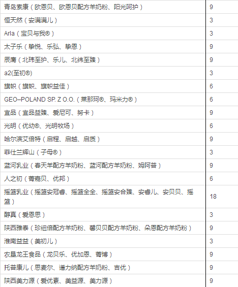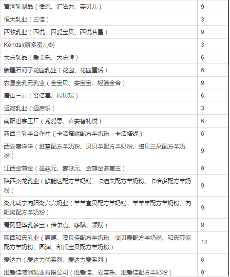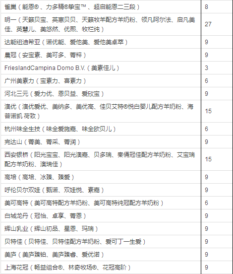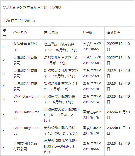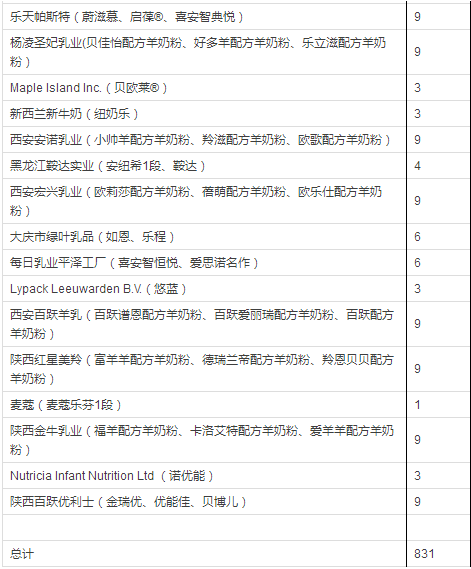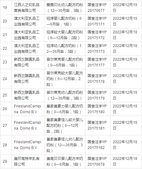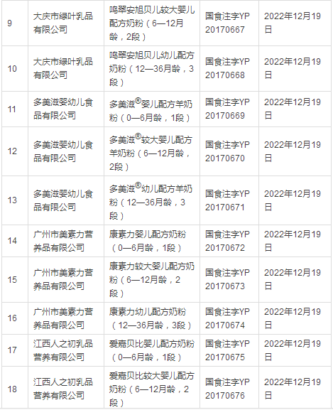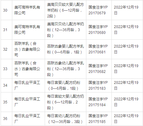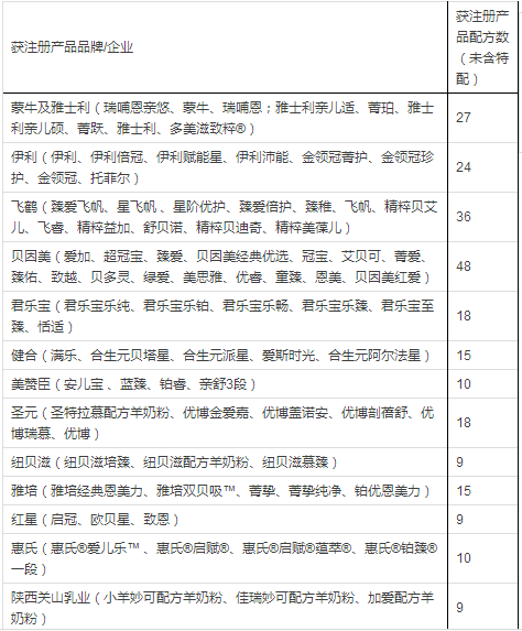 据小食代整理,截至上一批(12月14日),已获奶粉配方注册的企业和配方如下: