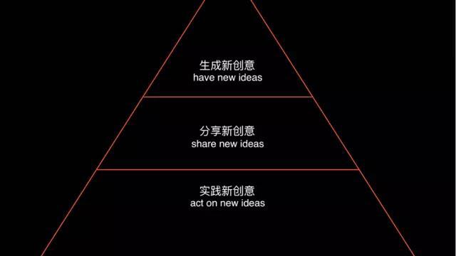 我们认为,当今最有弹性、最能适应、最成功的组织必须具有创新竞争力。创新竞争力是指企业实践、分享和生成新创意的能力。这其实是不同的境界,任何具有创新竞争力的组织都要具备这三个能力。