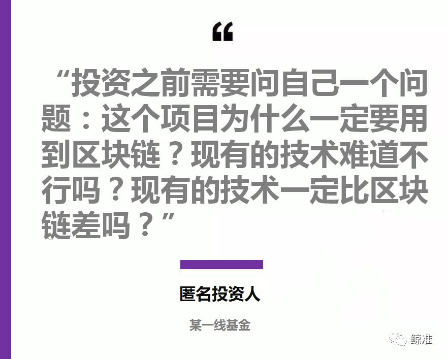 举个例子,世界上你会看到R3区块链联盟、银行之间网关的支持,它的技术解决的是账本的问题,提高交易频次。但在商业化落地区块链时,投资之前需要问自己一个问题:这个项目为什么一定要用到区块链?现有的技术难道不行吗?现有的技术一定比区块链差吗?因为区块链是相对成本比较高的一个技术,涉及到全世界的协作,所以目前ICO投资的时候要相对比较谨慎。