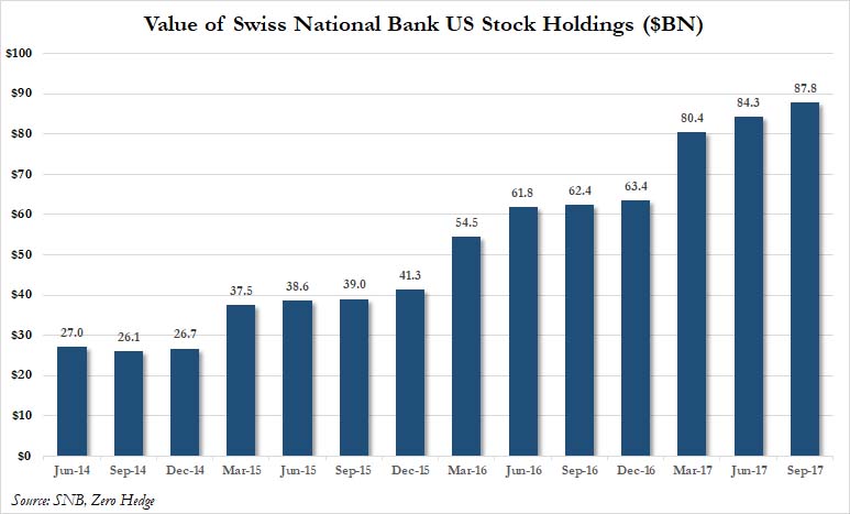 而购买股票资产也一直是瑞士央行的投资手段,近几年来这家央行一直在增加股票资产,其持仓中包括谷歌母公司、苹果、微软等:
