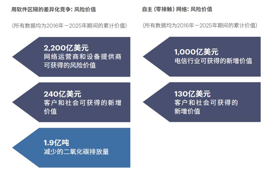 以上四大数字化主题及其所包含的数字化转型项目,将为电信行业、消费者和社会释放超过2万亿美元的价值。其中,“未来型网络”和“管道以外”是重点。