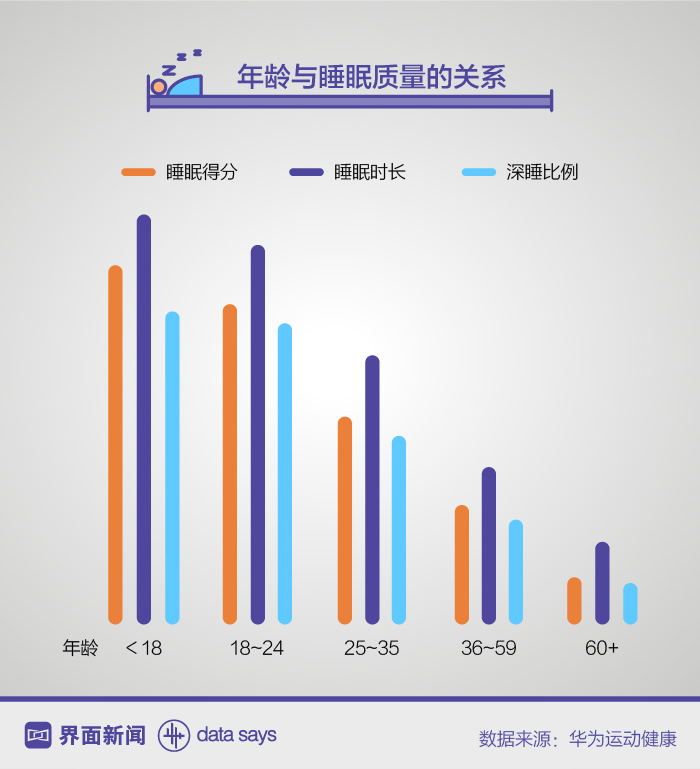 一般来说,睡眠质量会随着年龄的增大而显著下滑,且男性的睡眠质量要普遍低于女性。