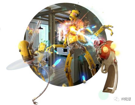 在演示图中我们可以看到,虚拟机器人正在真正的厨房里战斗,这展示了用户如何使用Magic Leap One玩游戏,Magic Leap想让游戏场景发生在任何地方。