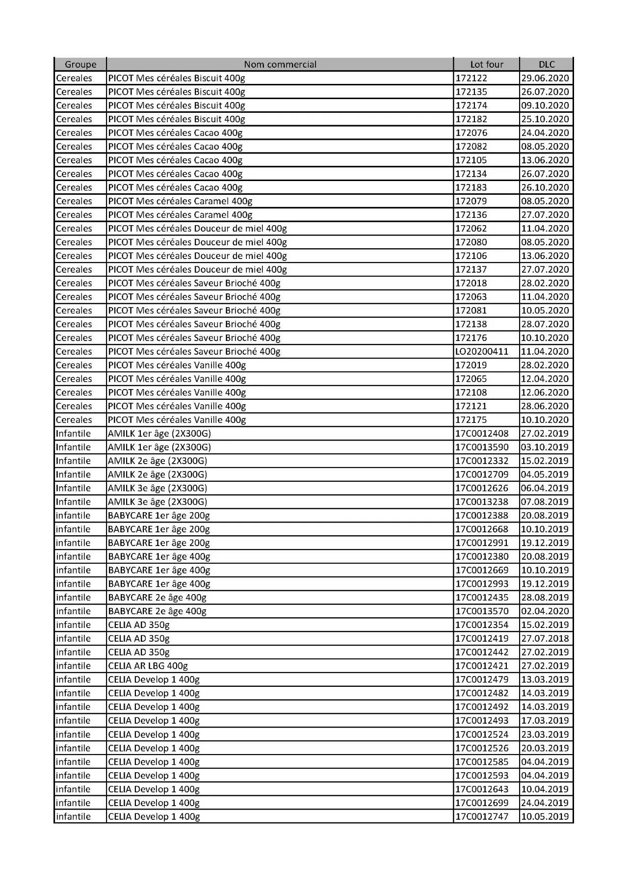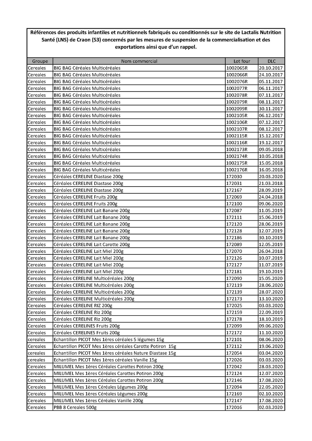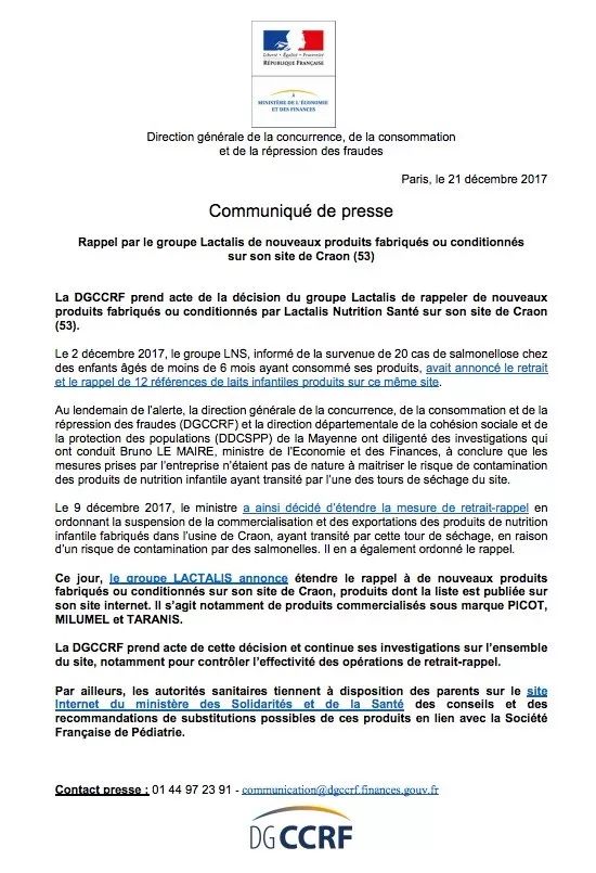 最新的法国卫生部通报说,兰特黎斯集团宣布扩大召回的一些新的产品,这些产品包括了PICOT 、MILUMEL 和TARANIS等品牌。当局表示,将继续调查工厂,特别会审查有关召回的操作是否有效。