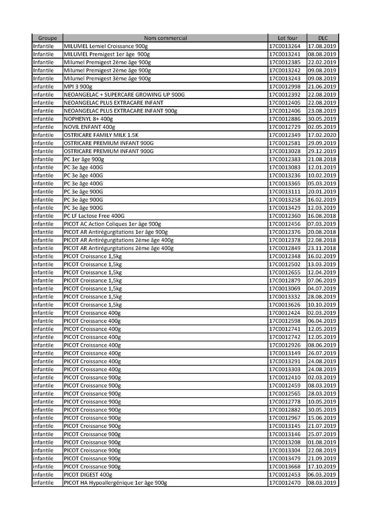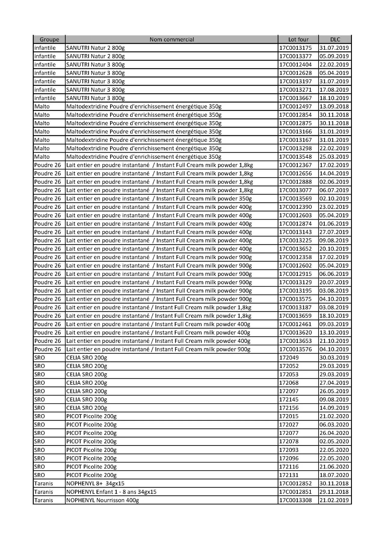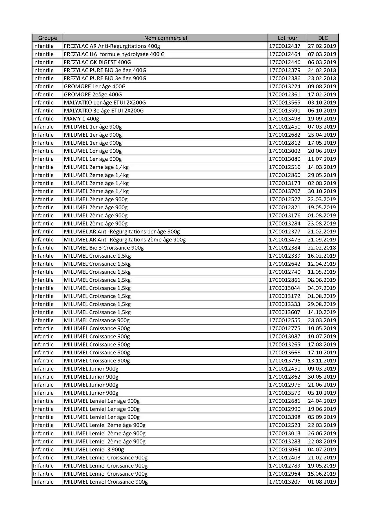 最新的法国卫生部通报说,兰特黎斯集团宣布扩大召回的一些新的产品,这些产品包括了PICOT 、MILUMEL 和TARANIS等品牌。当局表示,将继续调查工厂,特别会审查有关召回的操作是否有效。