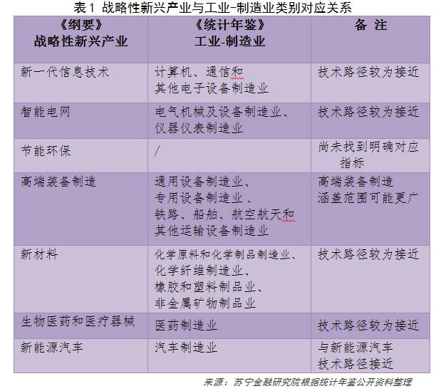 为便于整理《纲要》中提到的战略性新兴产业数据,我们选择江苏省2012-2015年统计年鉴中的制造业类别数据,给出了全省十三城市的分行业工业总产值数据。由于战略性新兴产业尚未成为严格意义的统计指标,我们仅按照现有制造业分类对其进行“就近”划分,具体关系如表1所示。