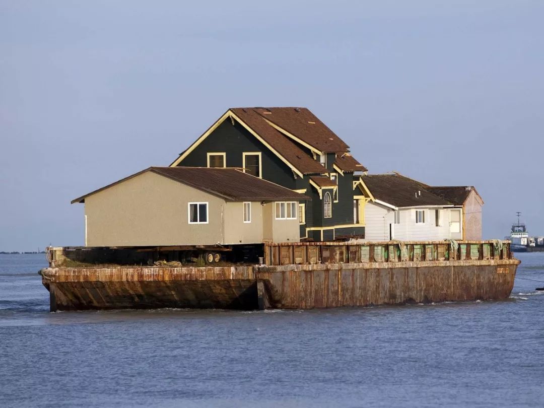 一个现有的房屋建在驳船上,以便有一个可随时移动的活动空间。这座占地900平方英尺的绿色建筑就坐落在盖茨运动场旁边的小船码头。