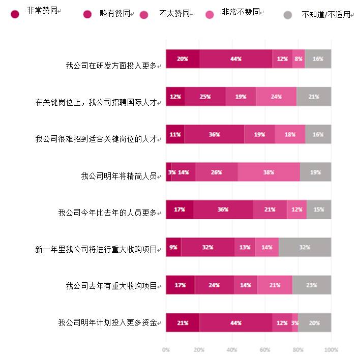 英国退欧:大部分受访者表示,英国退欧一事对其业务并无影响。去年调查中30%的受访者表示英国退欧造成消极影响,相比之下,今年的调查中只有22%的少数受访者如此认为。