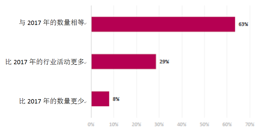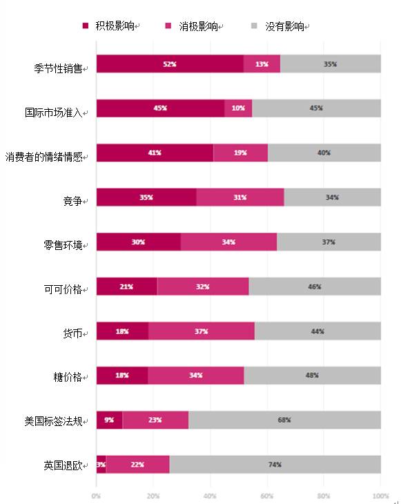 本行业销售前景状况良好。虽然潜在的糖果业糖税上升和健康产品消费趋势会带来不利影响,但这种担忧并未削弱行业前景。我们的受访者对2018年的销售前景非常乐观,仅有6%的受访者预测销售额相比2017年会有所下降或更加糟糕。