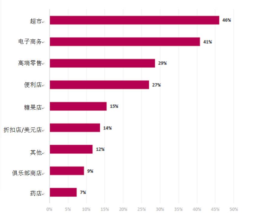 根据我们的受访者来看,实体超市仍然有强劲的增长前景。发达市场上的大型连锁超市正面临着来自折扣商店的激烈竞争,不过更多的受访者表示糖果行业销售增长机会在超市比在折扣店或一元店更多。