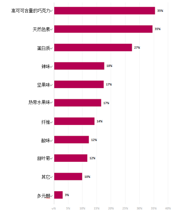高档巧克力、季节性和功能性糖果都有望成为未来的增长动力。高可可含量、天然色素及蛋白质成为了流行配料。