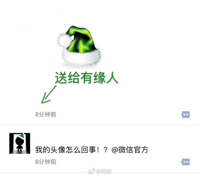 甚至还衍生了出愚人节般的骗人手段,说在朋友圈里@微信官方,就能自动给头像戴上一顶圣诞帽。看看现在微信列表里的头像,感觉微信官方加班真的非常辛苦。