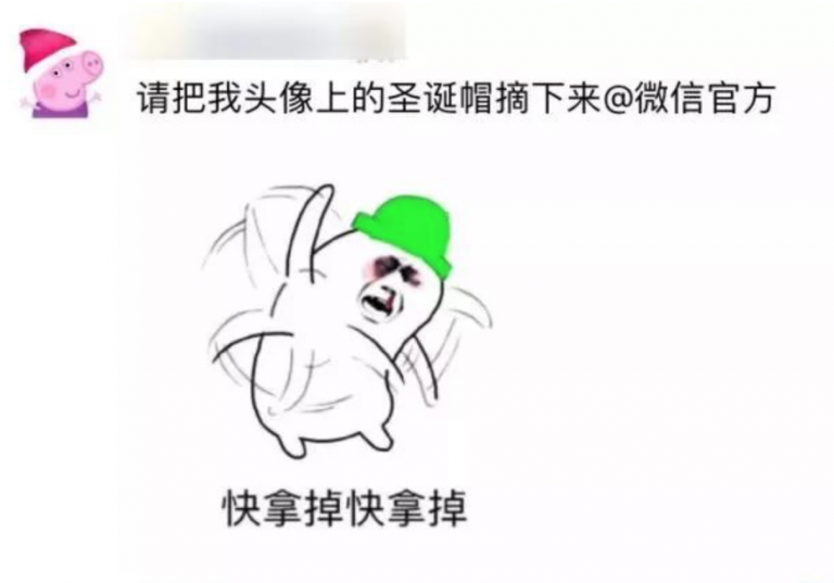 在微信群里,今年换上圣诞帽头像的人比往年多得多。仿佛不戴上一顶圣诞帽就是不合群,就低人一等!