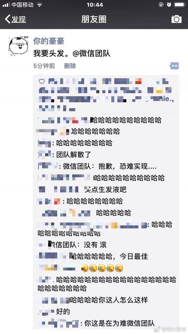 你们知道最难的要求是什么吗……我天,居然有人开口就跟@微信官方 要头发: