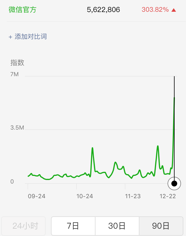 更何况你们平时根本不搭理微信官方的,这两天突然想起来就疯狂艾特,微信指数同比增长嗷一下 300%,真的不行的。