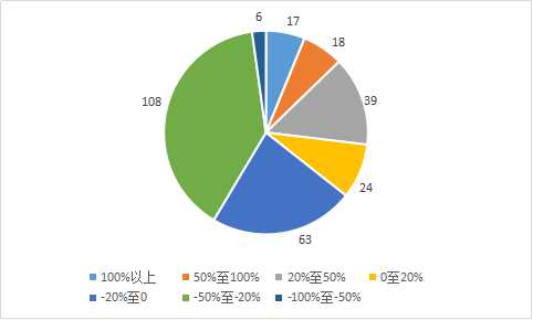 在个股涨幅方面,截至今年12月20日,有177家A股药企区间走势下跌,占申万医药行业总数(276家)的64%,仅有99家企业走势上涨(排除上涨新股后为58家)。值得注意的是,在累计涨幅为负的177家企业中,天圣制药(002872.SZ)和赛托生物(300583.SZ)是今年上市药企中仅有的两只出现跌幅的新股,其中赛托生物是今年上市新股中首只破发的个股。截至目前,今年共有43只医药新股上市,与2016年上市新股数量相比多出28家,与其他行业相比数量亦居于前列。