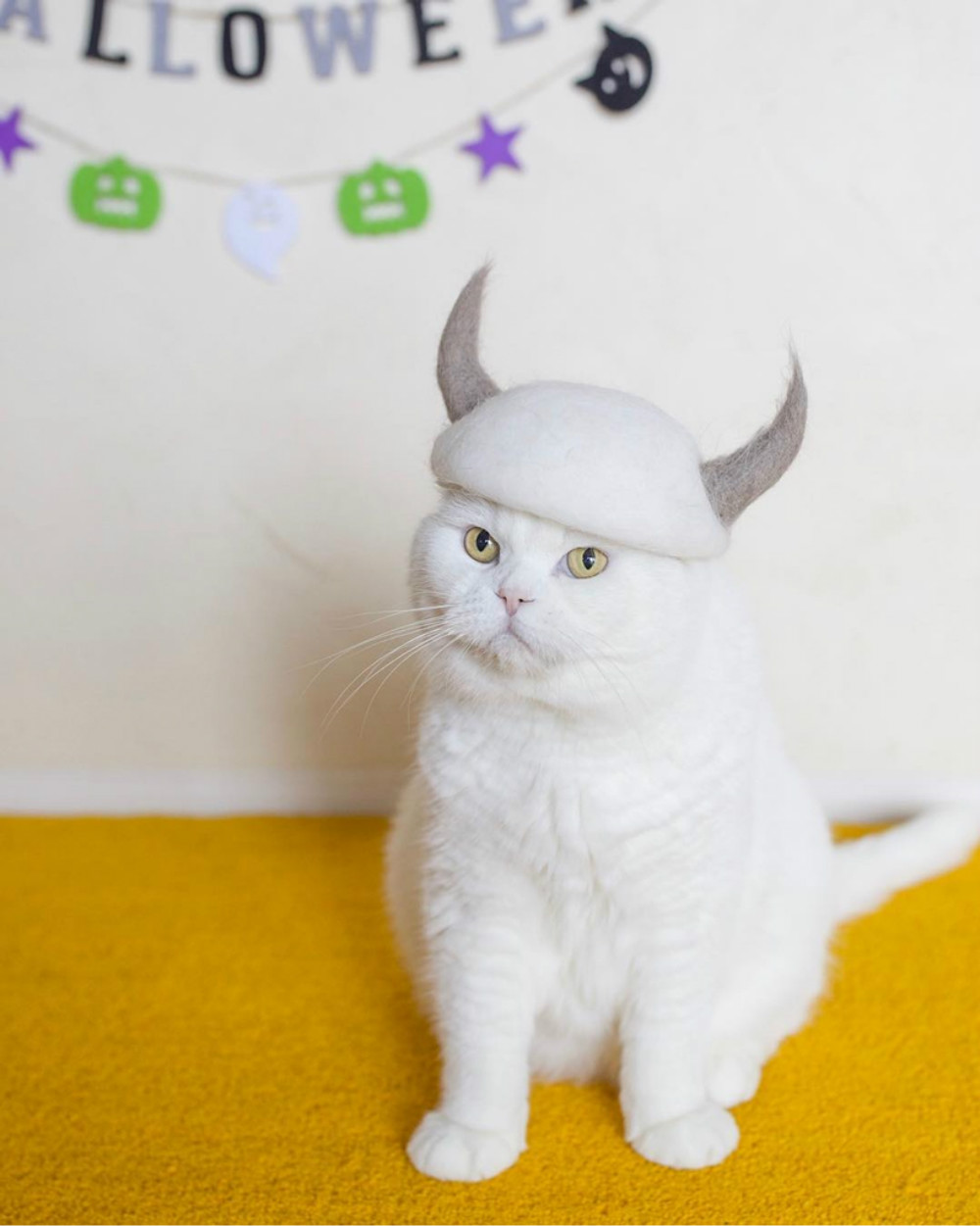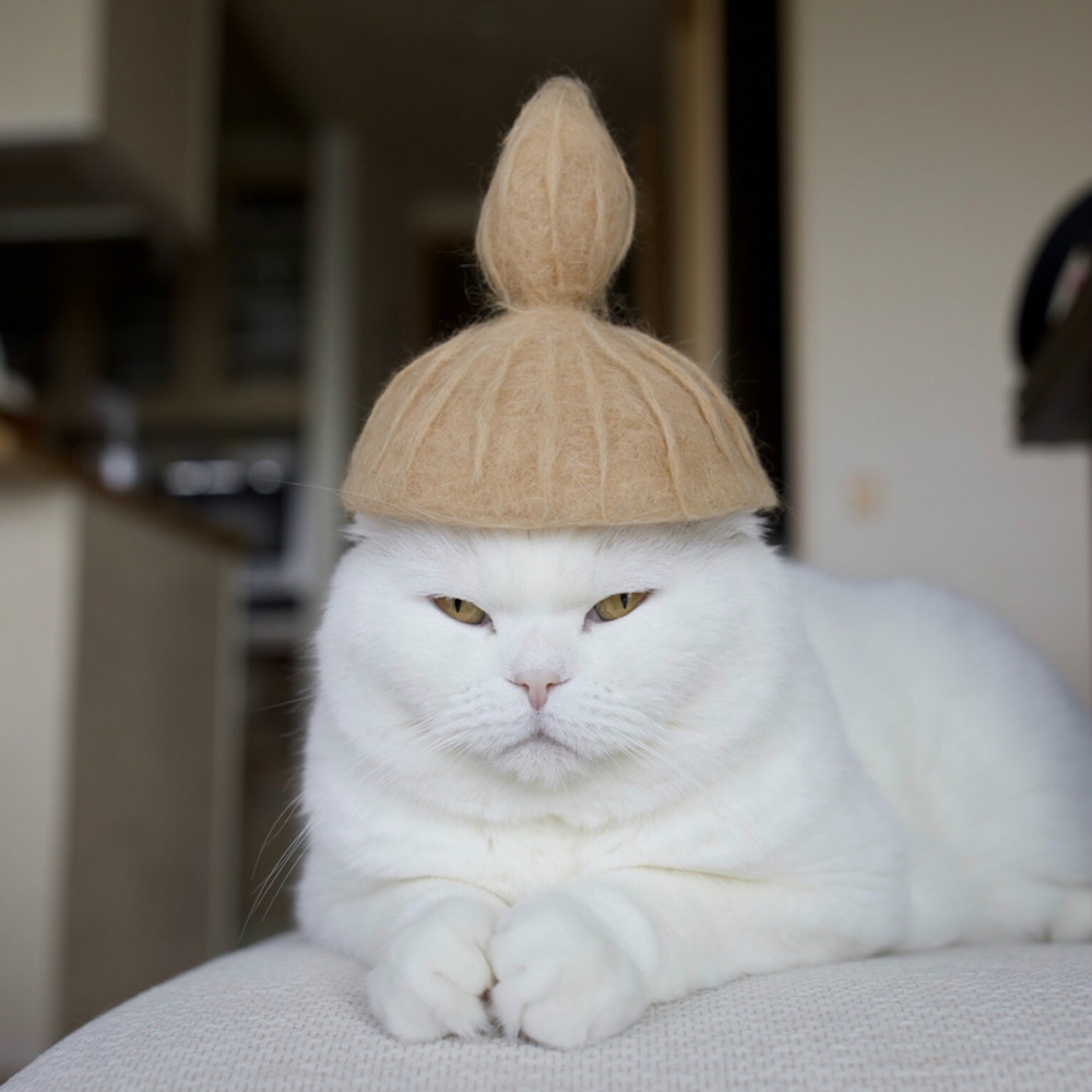 现居东京的日本摄影师山崎良 ( Ryo Yamazaki ) 养了三只苏格兰折耳猫,三种毛色三种风格,本来一家四口应该是人生赢家人设,结果Ryo Yamazaki最近好像跑偏了。Ryo Yamazaki日前发布了一组摄影作品,在instagram迅速走红。这组照片的主角仍然是自家的三只猫,不过三只猫都带着形状怪异的帽子,一脸凝重的表情实在很难说是高兴。不高兴的原因可能有以下几种,比如帽子是摄影师薅猫毛做的,这样下去秃顶不过是迟早;帽子的形状太滑稽,cosplay莱娅公主的小白像是借了小羊肖恩的头套,更别提让三个主角中的两位主动躲开镜头的傻瓜尖锥帽;还有人猜这是对猫咪“处处留毛”的惩罚,猫主子们大概也是深以为然,玻璃心碎成渣渣;万圣节早过了,还被迫扮成南瓜和糖果,就像穿了过季的衣物,心里眼里都尴尬。
