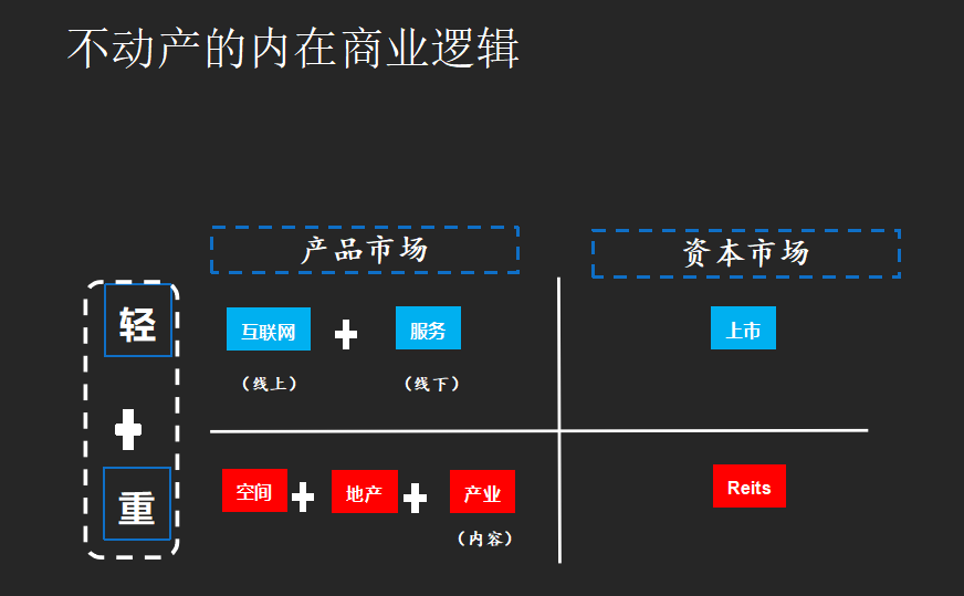 对长租公寓、联合办公等存量房地产类的运营和盘活,最终的目的就是为了让不动产流动起来。在这个意义上,金融和房地产,或者房地产的金融属性,在未来的市场中可能会更多的体现出来。