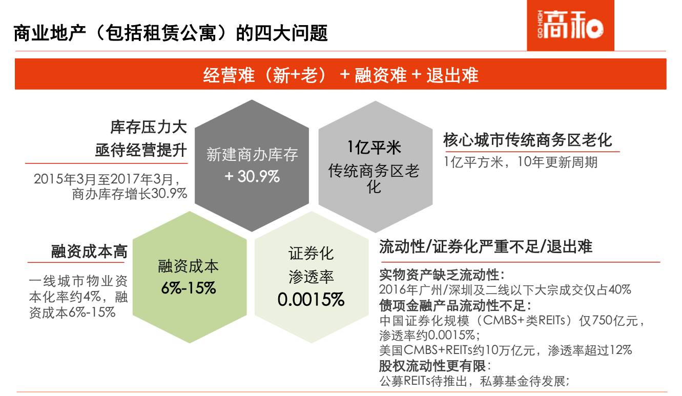 可是,如果将大宗不动产变成经济交易的一环,通过专业运营商,实现大宗不动产的保值和增值,最后顺利对接多样化退出渠道……这时候会涉及消费者的体验,运营商的能力和整个金融的管理制度,却是可以抵御防范金融风险的。