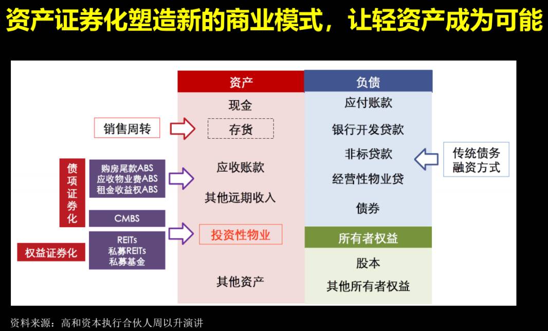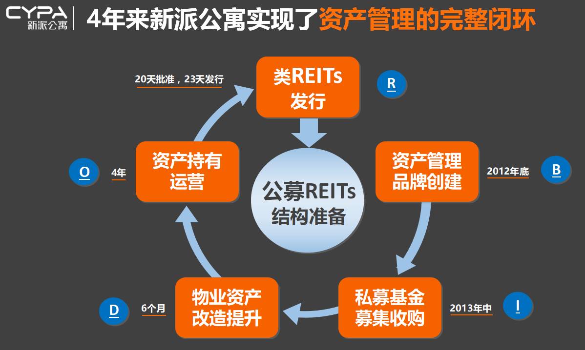 REITs在内的资产证券化可塑造新的商业模式,帮助开发商转型。比如,通过类REITs,新派公寓最终实现了资管管理的完整闭环(如下图)。