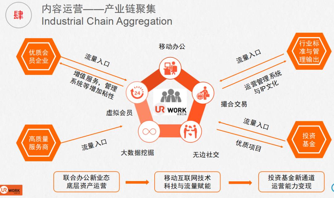 当然,仅仅搞一大堆智能硬件,根本不是楼宇的智能化。毛大庆认为,楼宇智能化是能够让你的用户更高效更快捷低成本的在里面办事,这个需要互联网和大数据来解决。比如优客工场物理桌子只有三万四千多张,但后台APP线上用户有14万人,很多都是买优客工场商品包的,未来线上收入可能达到30%左右。