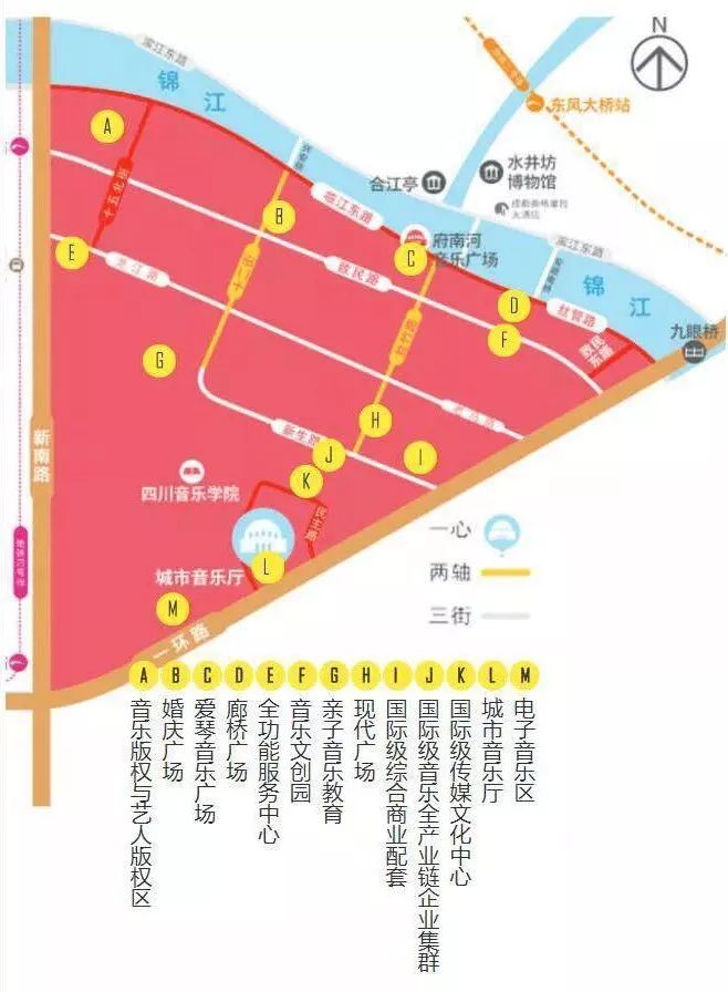 而在最新公布的规划中,我们看到音乐坊也在变大,将与锦江对岸的水井坊形成交相辉映的态势,组合形成黄金游线,打造世界名河与文化艺术的标杆地区。