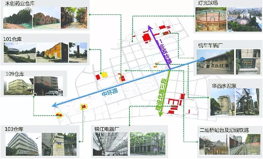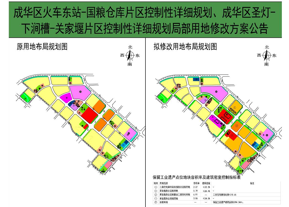 为响应中央关于工业企业“退城入园”政策以及国务院办公厅关于推进城区老工业区搬迁改造的指导意见,顺应城市发展需求,成华区政府申请结合成都机车厂片区城市设计方案,对成都机车厂片区进行用地调整。本月,成都规划公众平台发布了《 成华区火车东站-国粮仓库片区控制性详细规划、成华区圣灯-下涧槽-关家堰片区控制性详细规划局部用地修改方案公告 》,确定了6处工业遗产完整保留点位,保留工业遗产建筑面积达5394平米。