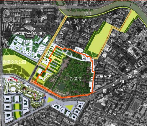 1、在武侯祠西侧规划武侯文化公园,满足市民与游客的需求。