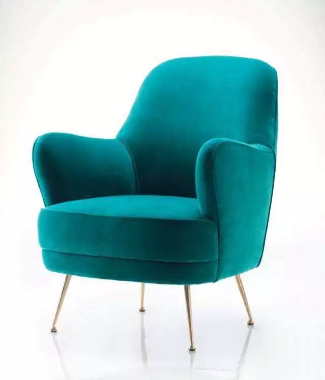 另外,它还很适合黄铜或者木头材质。像下面这种黄铜脚的丝绒单人沙发,摆在家里不要太摩登噢~