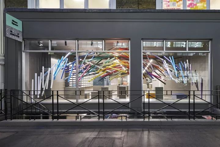 2016年12月,G.F Smith在伦敦Eastcastle的一栋大楼里设立了一个关于纸的装置展览空间——G.F Smith Show Space(也是G.F Smith的门店)。整个展示空间共有两层,一楼橱窗所看到的漂浮状装置名为“Turbulence”,如同一团奔腾着向前的彩色气流。
