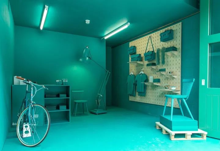 它还为Marrs Green办了一场超酷的临时商店,邀请来同样有着英国血统的好朋友们,比如Anglepoise台灯、Richard Brendon茶杯、Cambridge Satchel剑桥包、设计家具H Furniture椅子,全部统一着装成Marrs Green色(连墙壁都不放过),向追求上佳工艺和时髦外观的英国工匠精神致敬。