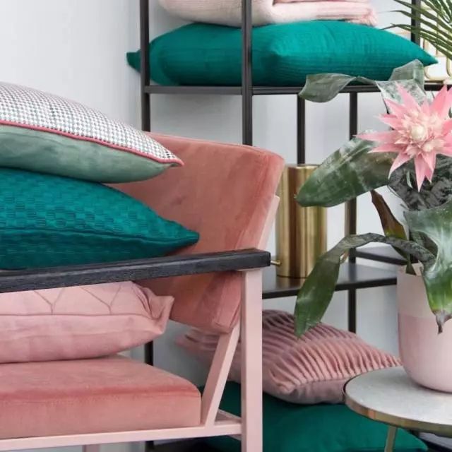 像马尔斯绿这么“跳”的颜色,最保险不出错的方法就是用在配件上,作为小点缀。什么玻璃杯啦、靠垫啦、地毯啦。(运用到穿搭上同理,用在小墨镜之类的饰品最抓眼球。)