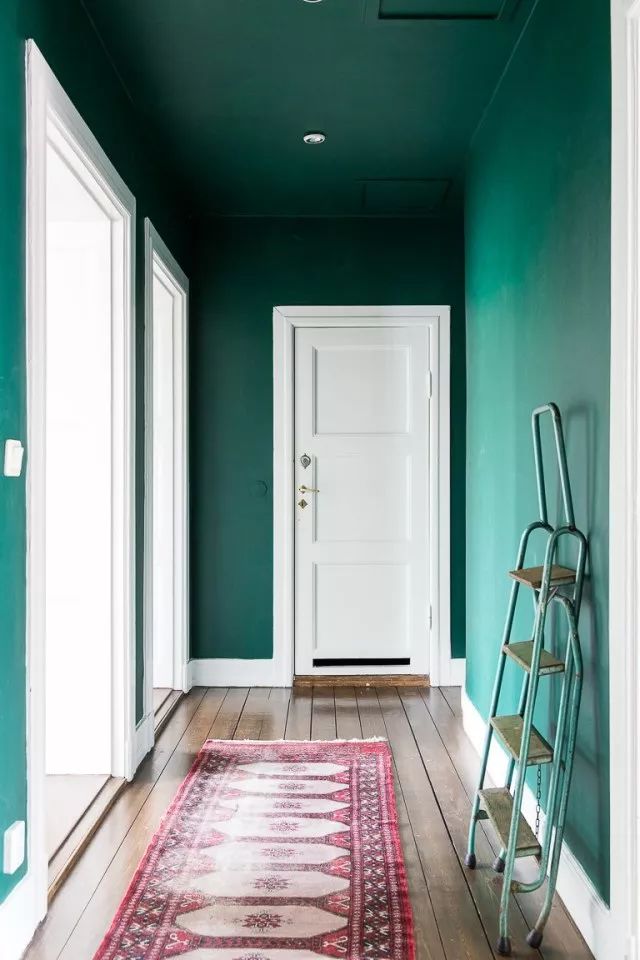 如果你是个搭配高手,前面那些当我没说,直接把马尔斯绿大片大片铺开吧!所有的墙面、天花板、整条走廊,都采用马尔斯绿作为空间主色,要注意明度层次的丰富性。