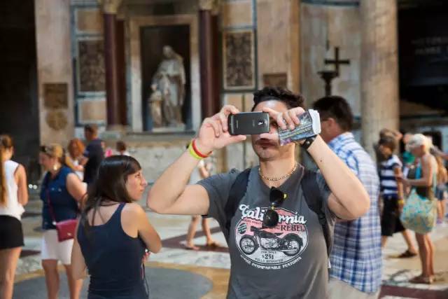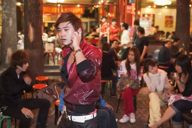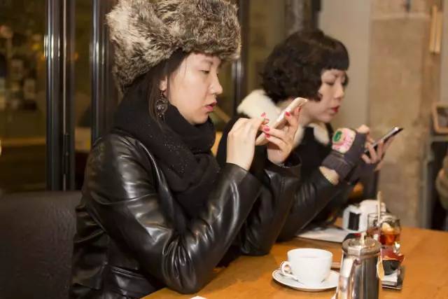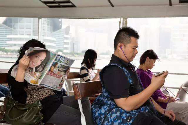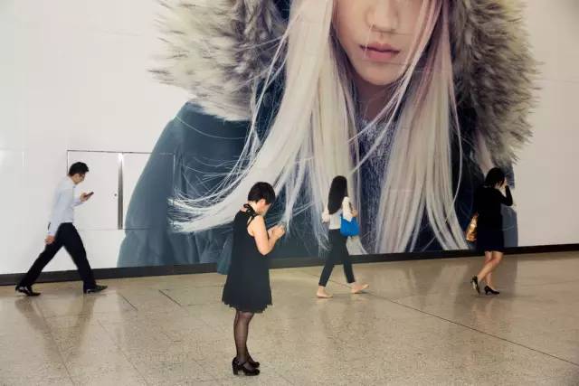 马丁·帕尔(Martin Parr,1952— )以消费纪实的摄影著称于世,《移动电话》(Mobile Phones)项目最早在1995年就有了,一直延续到2014年。这些照片拍摄于中国大陆、香港、日本、韩国、印度、英国、美国、法国、德国、意大利等地,意味着这是一个全球性的消费主题。在这些作品中,马丁关注的是人物的夸张神态和混乱的场景,以及手机饰物,打手机的人的手表、戒指、眼镜、帽子等饰品,通过这一切,让我们看到消费社会的浮华表象,幽默之余也感受到马丁惯有的讽刺。