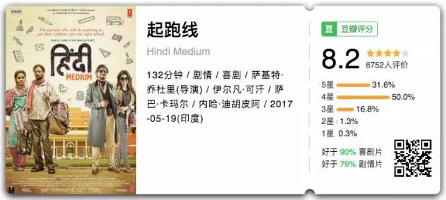 《起跑线》——又一部印度片,这一部是喜剧。电影讲述一对中产阶级的印度夫妇,为了让女儿接受好的教育,费尽心思让她进入名校的故事。通过喜剧反讽教育问题,那么问题又来了,什么我们拍不出来?