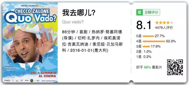 《我去哪儿?》——意大利2016年票房奇迹,讲述了一个意志坚定又自带优越感的直男癌宝妈男奋力保住铁饭碗的故事,可以从头笑到尾,幽默又不低俗。