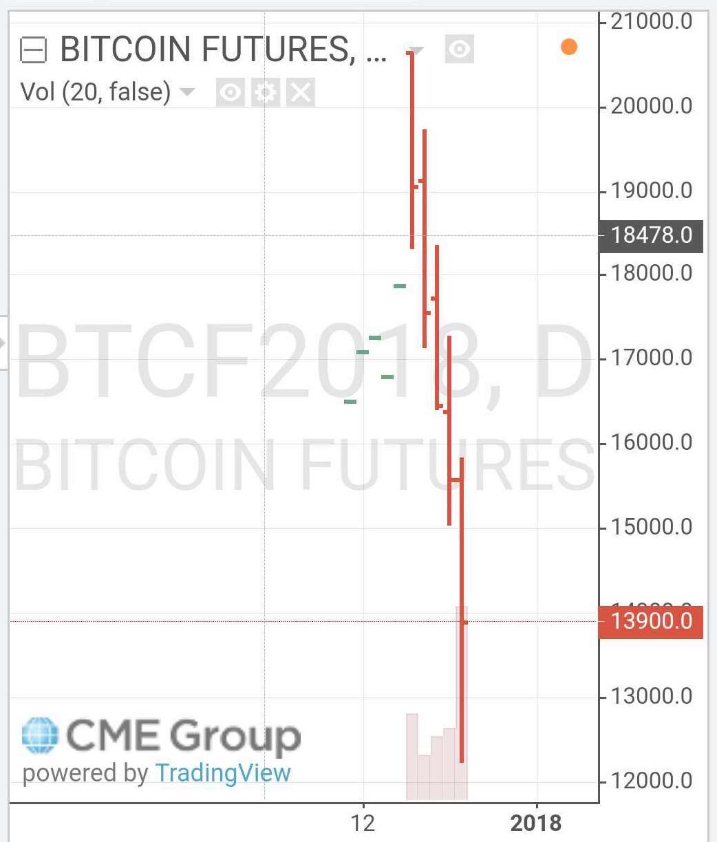 还有声音表示,比特币价格的下跌可能是比特币期货带来的利好出尽、价格回笼。比特币期货上市当天,芝商所(CME)董事长Leo Melamed在接受媒体采访时表示,CME将驯服比特币,让比特币不狂野、不疯狂,并表示,要把比特币驯服成一种有规则的交易工具。至少从目前看来,他的目的达到了。CME的比特币近月期货合约价格下降至13900美元,价格变动幅度达到1430美元,可以说从上线以来价格一路下滑;芝期所(CBOE)的期货近月合约13950美元,跌1340美元。