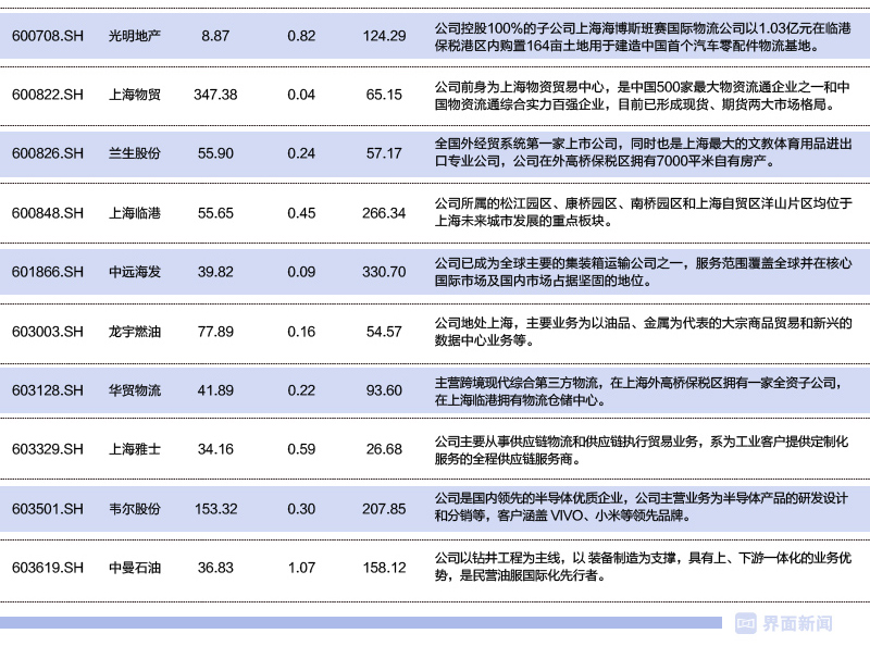 上海物贸(600822.SZ)主要从事汽车贸易、化工等生产资料的批发与零售,以及有色金属平台交易等,旗下拥有上海市内交易量排位第一的旧机动车交易市场、上海危险化学品交易市场等多家专业市场,在业内具有一定的知名度和影响力。作为上海本地的上市公司之一,上海物贸有望在本次规划的落实过程中充分发挥区位优势,借机实现自身业务规模的拓展和业绩的提升。