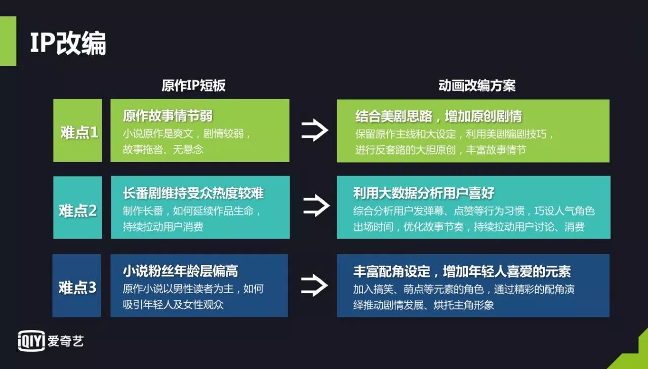 所以爱奇艺定义一部头部IP的标准并不是简单的以它的流量第一天破亿为标准,而是它能做四季、五季甚至更长。