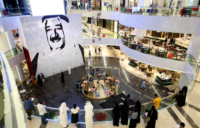 2017年8月10日,科威特城,卡塔尔人民为感谢科威特埃米尔萨巴赫在卡塔尔断交危机中的调解工作,向科威特赠送一面萨巴赫肖像。今年6月,以沙特为首的多个国家以支持恐怖主义为由,宣布与卡塔尔断交,并提出关闭半岛电视台等多项要求作为恢复交往的前提。不过,在科威特和美国等调解者的斡旋下,断交危机至今没有得到解决。