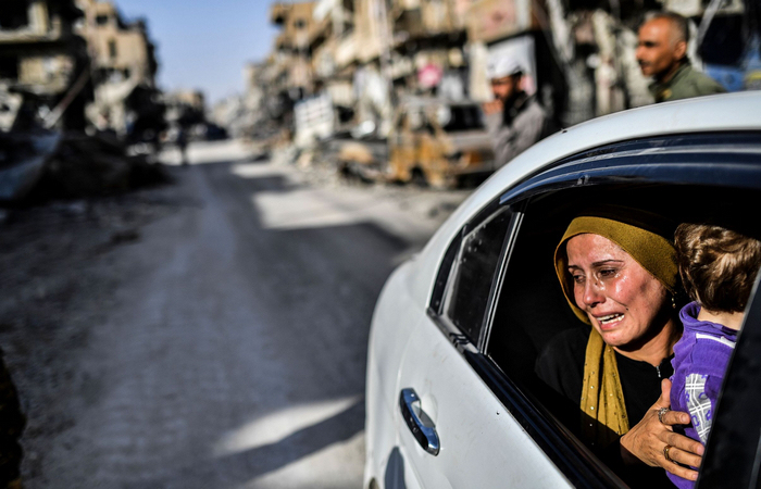 2017年10月20日,叙利亚拉卡,一名妇女在看到自己的房子时哭泣。由美国支持的叙利亚民主军(SDF)声称他们已经完全收复ISIS的“首都”拉卡,ISIS的占领地已缩水六成。在经过连年战乱后,原有人口30万、被视作旅游胜地的拉卡市如今已经沦为废墟。