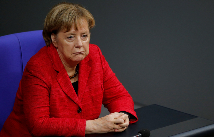 2017年11月21日,德国柏林,德国总理默克尔在联邦会议上发言。虽然在9月举行的大选后保持了领先地位,但默克尔领导的党派联盟却面临组阁困境。与自由民主党、绿党持续近一个月的谈判不欢而散后,最大反对派社民党主席舒尔茨终于在12月初松口表态称,愿意继续与默克尔组成联合政府。