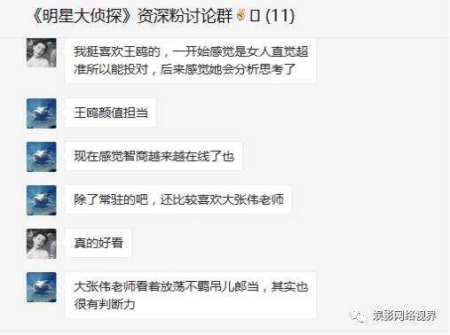 其中,有好几位粉丝表示,女神王鸥作为节目的颜值担当,不仅好看,而且直觉超准;随着节目的更新,其分析思考能力也在与日俱进;