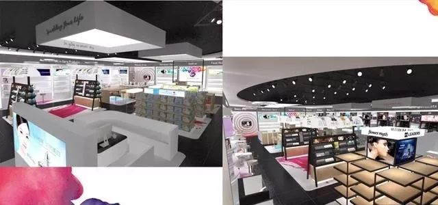 走进店铺可以发现6大亮点:主色调暗黑系,整个风格更时尚神秘;LED屏点缀其中,多了一份灵动轻快;美国彩妆bincavidou以店中店形式陈列;Style Me、Makeup Studio以及Skin Expert方便顾客体验或检测;商品更加细分化、专业护肤以及高端洗护区亮眼;收银区革新,自助收银更快捷。