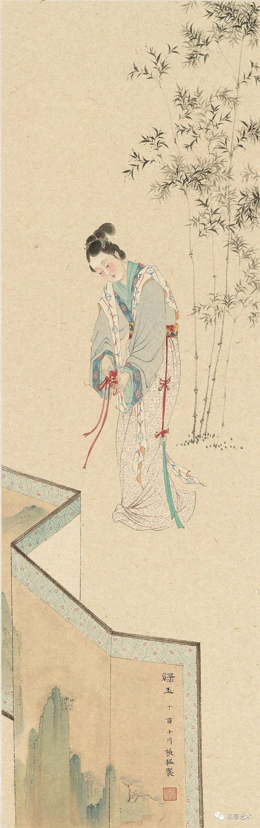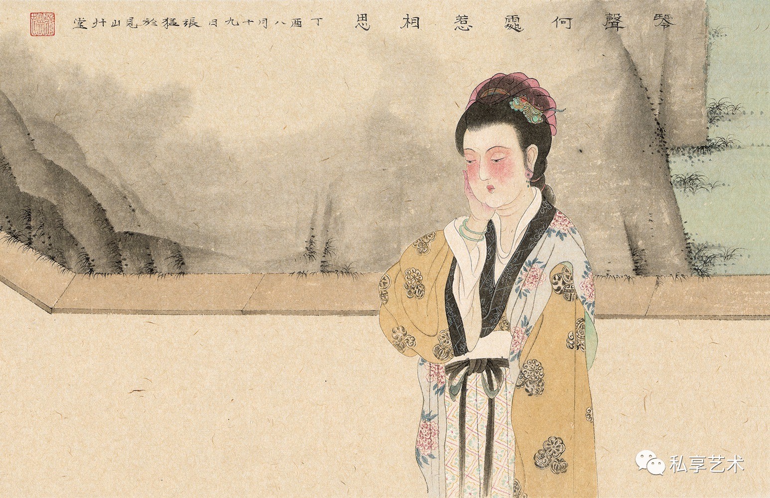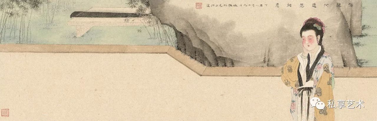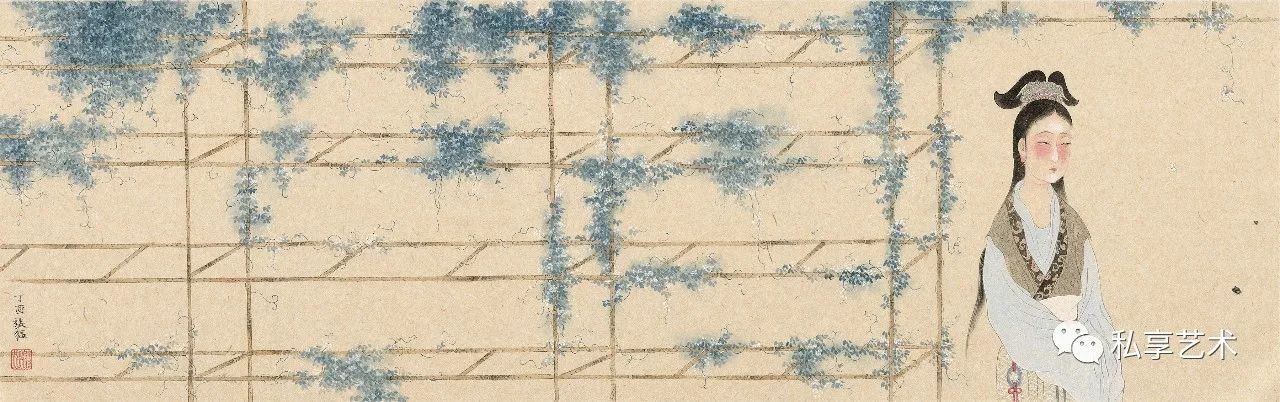 《琴声何处惹相思》25x75cm 纸本设色 2017