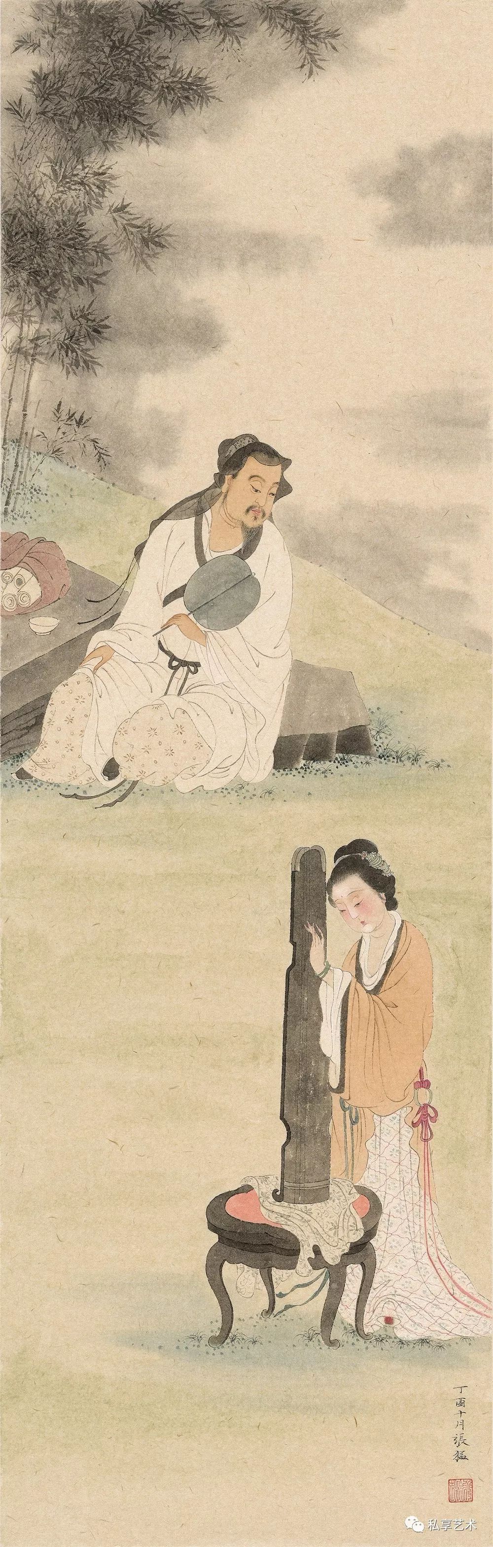 《调琴图》25x75cm 纸本设色 2017